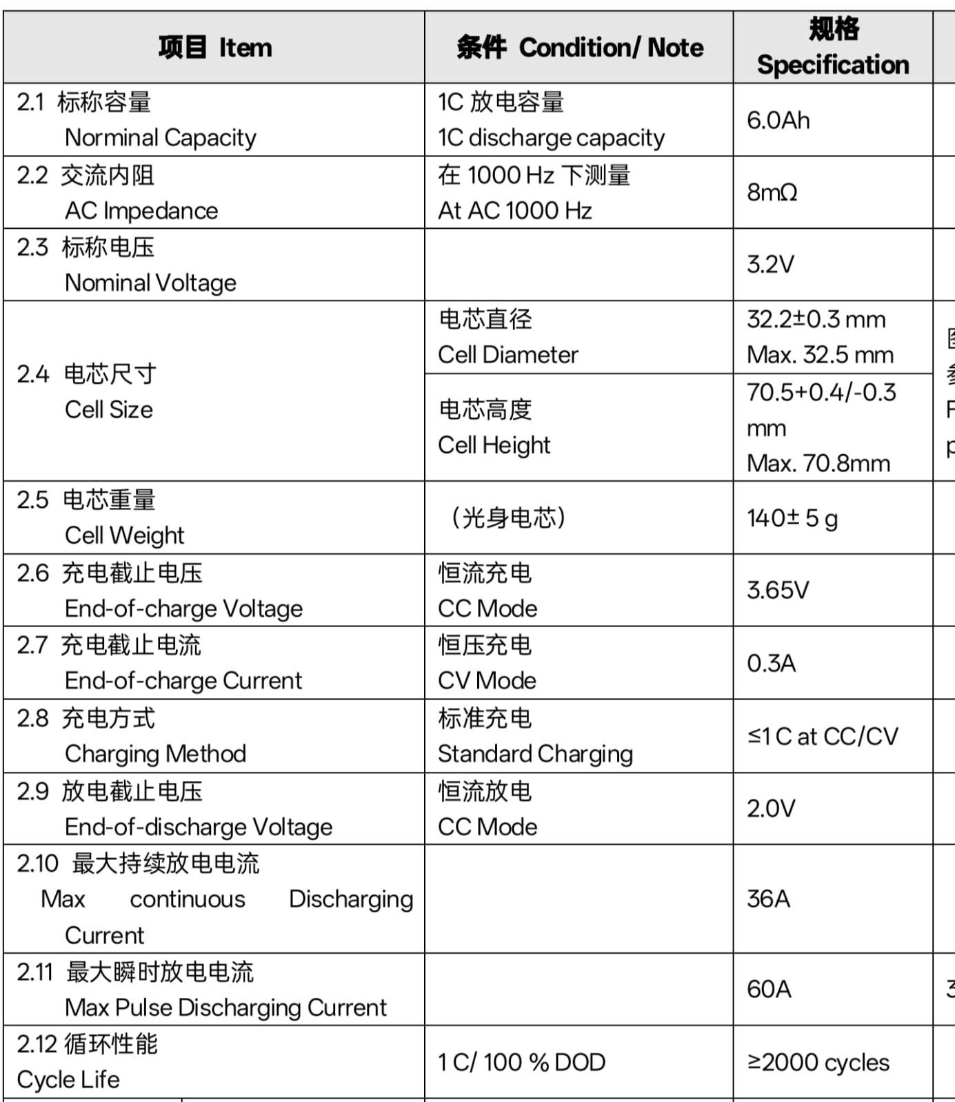 Su voltaje nominal de 3.2V garantiza una curva de descarga muy estable, mientras que su baja resistencia interna de 8 mΩ favorece una mejor eficiencia, menor calentamiento y excelente respuesta bajo carga. También se destaca por su larga vida útil, con más de 2000 ciclos al 100% de profundidad de descarga, lo que se traduce en una solución durable y confiable a largo plazo.