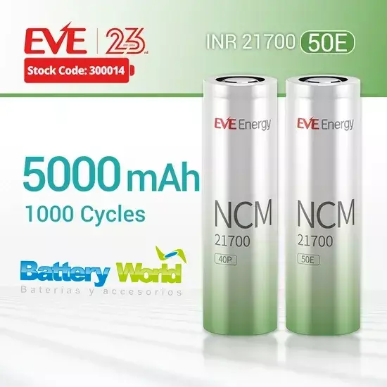 Marca y trayectoria: EVE Energy (China, 2001) es un fabricante global de baterías con líneas para consumo, automoción y almacenamiento.